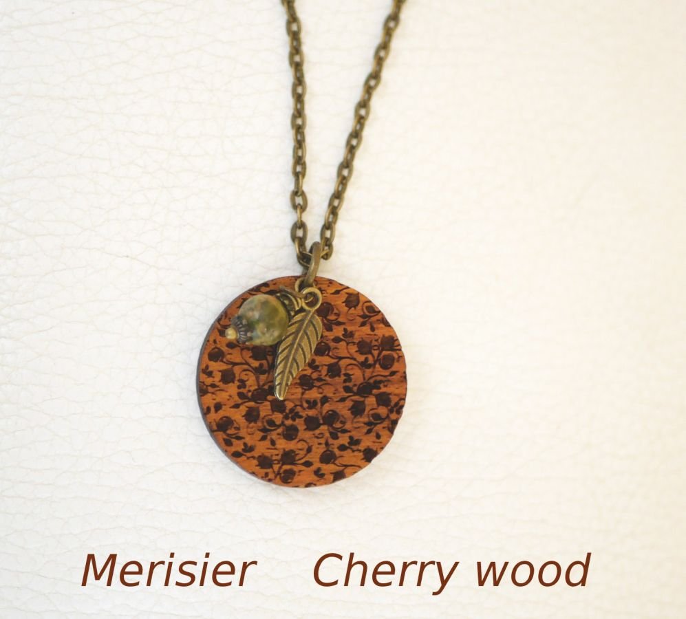 Um pingente redondo de madeira natural gravado com pequenas flores com encantos: encanto de bronze envelhecido à sua escolha e pérola de pedra natural Unakite. Ideal como presente para um casal ou como presente para convidados de casamento com um dos nossos laços de madeira a condizer para o cavalheiro. A redonda é feita de madeira de cerejeira (de uma serração na região de Ardèche em França), deixada natural. A parte de trás do pingente de madeira pode ser gravada com palavras doces, uma pequena mensagem de amor ou amizade. Escolha neste caso Com gravação e indique o seu texto a gravar (possíveis símbolos como coração, infinito, cruz, estrela), pode especificar instruções particulares de gravação e escolher a fonte de escrita. Dimensão do pingente redondo de madeira: 35 mm de diâmetro. Espessura: 5 mm. Montado sobre uma corrente de bronze com elos finos. Comprimento da corrente: 46 cm + 5 cm de extensão da corrente. O encanto por defeito é a folha ou indicar a referência do encanto que prefere (de acordo com a foto dos encantos). Escolha também a embalagem de presente que prefere.
